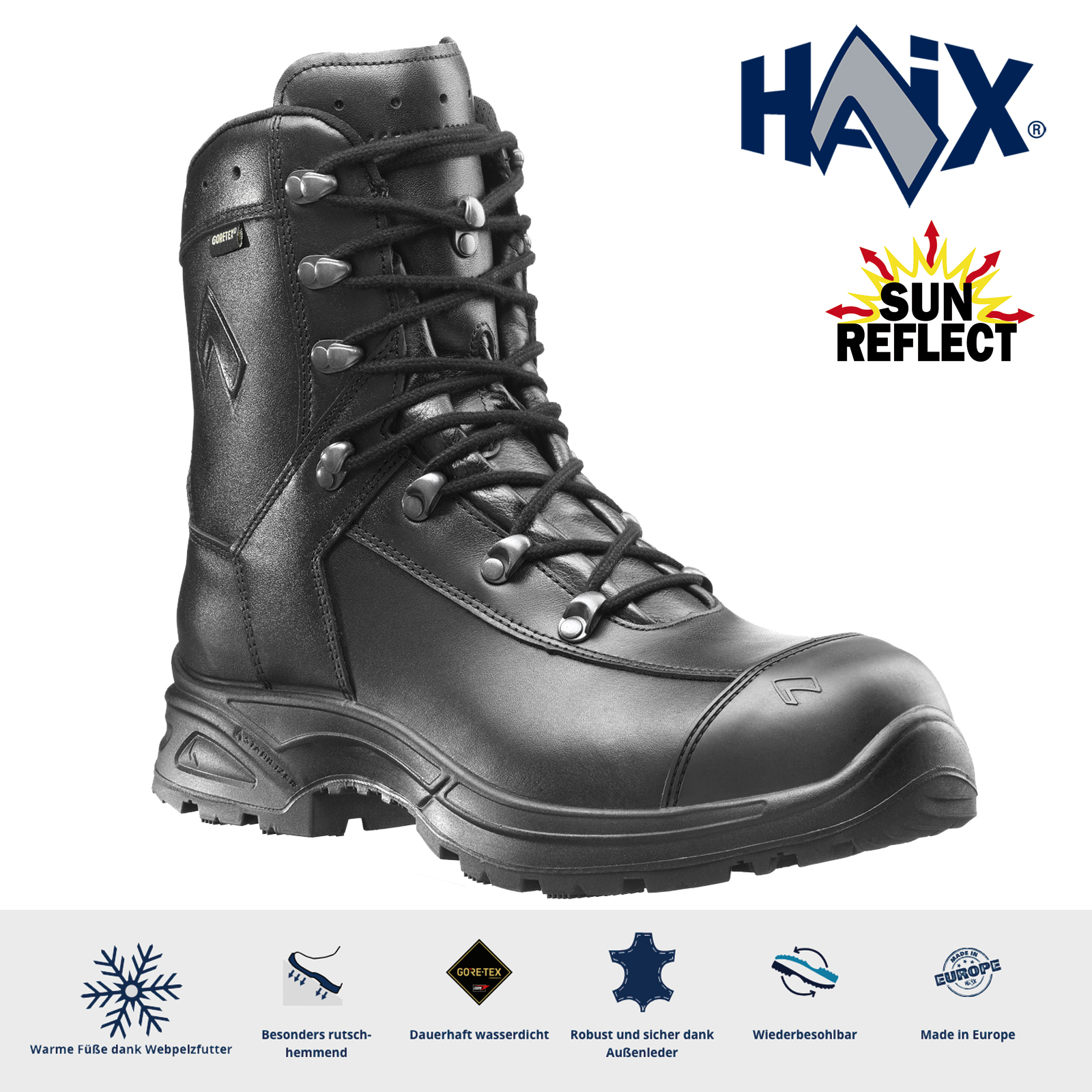 - Die HAIX Sicherheitsschuhe bestehen aus hochwertigem Bullenleder. Es ist hydrophobiert: Diese Behandlung macht das Material wasserdicht.
