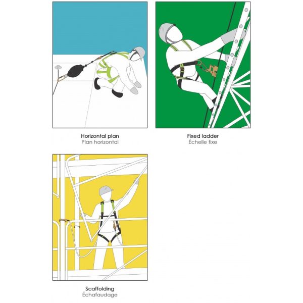 - 2 Auffangpunkte – dorsaler D-Ring (Rücken) + 2 sternale textile Auffangösen (Brust)